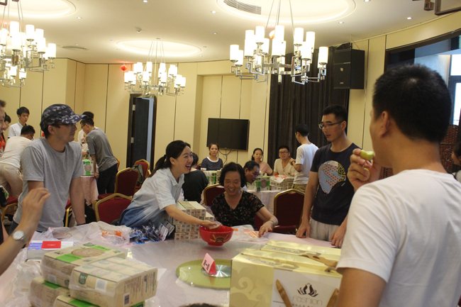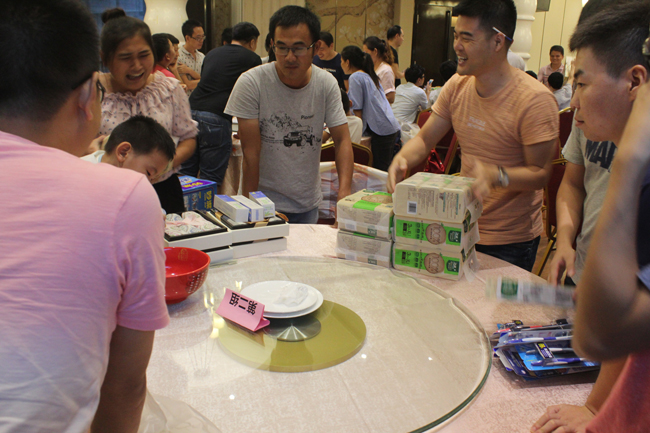 晚宴在一片歡快、幸福中度過(guò)。宴結(jié)束后,大家提著大包小包戰(zhàn)利品離開(kāi),彼此的臉上都期盼著對(duì)公司來(lái)年的更精彩的博餅活動(dòng)。